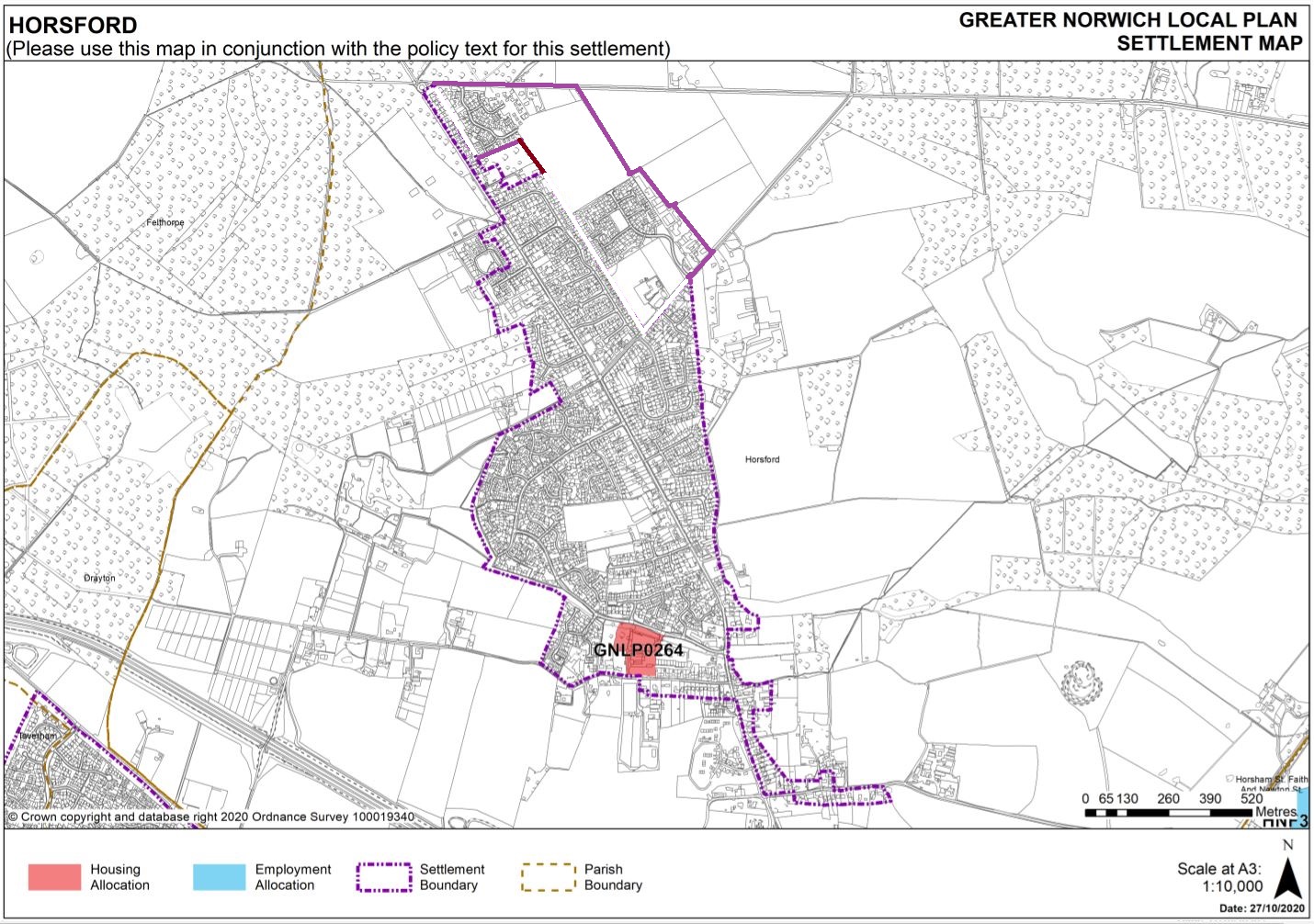 There are a number of examples of inconsistencies throughout the Part 2 Pre-Submission Draft Sites Plan in terms of the treatment of sites with planning permission / under construction and whether they are included within the Settlement Boundary. There are a number of examples of sites under construction that are included within the Settlement Boundary such as the Draft Sites Plans for Hethersett, Poringland and Thorpe St Andrew and given that the Horsford scheme is largely complete, the sound and justified approach is to also include it within the Settlement Boundary as shown on the enclosed drawing.